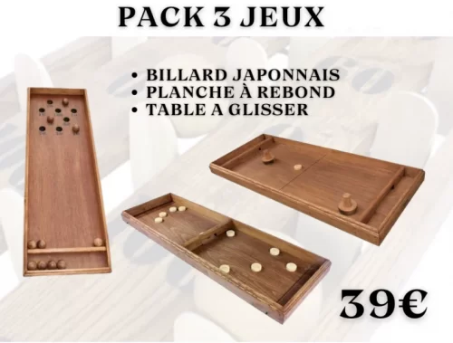 Ce pack de jeux estaminet à 39 € comprend trois jeux traditionnels en bois :