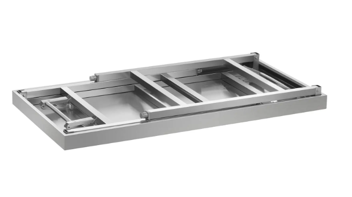 Sa surface hygiénique en acier inoxydable facilite le nettoyage et assure une grande durabilité. Le mécanisme pliant simplifie le transport, le rangement et l’installation rapide sur site.