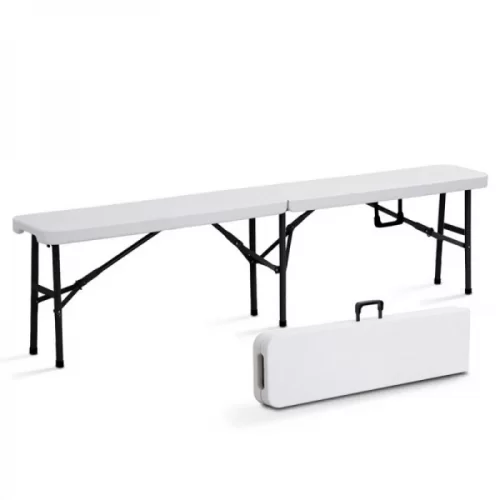 Design pliant : Plateau d’assise de 183 x 29 cm (91x29x15cm plié) , avec des pieds pliants pour un rangement compact.