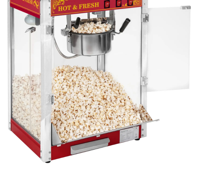 Production : Jusqu’à 5 – 6 kg / ~16 L de popcorn / heure – adapté aux événements moyens à grands.