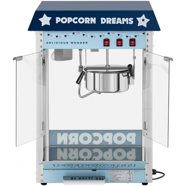 Apportez une touche de gourmandise et de fun à vos événements avec la machine à pop-corn bleue Mysterloc !